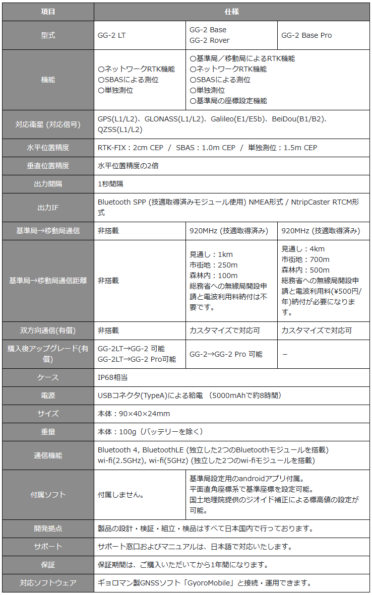 GNSS-RTK測位ユニット「GG-2」の概要